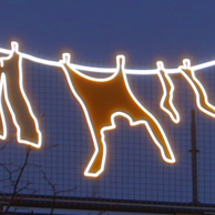 All together 13 neon artworks by artists are installed on the Plaine de Plainpalais, a huge central city square of 97’000 m2. 15 artworks form the Neon Parallax, 3 were separate commissions. This achieves an artistic parallax between the advertised city lakeside, and the popular cultural district of Geneva